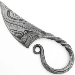 The butterfly knife is without a doubt one of the most popular knives today. Take this beauty here; you can see why they are so popular. The blade is made from Damascus steel that has 176 blade layers and is tempered around 54 to 55. The pattern on the blade is a twist pattern that features swirls and of course twists. Two fullers lighten the blade for optimum use. The frames of both handles are made from stainless steel. The mounts are made from ABS with a wine colored marble effect. At the end of the bite handle is a safety latch.Overall Length: 8.75 Inches