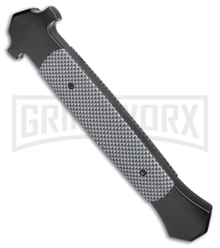 Mago 13″ Sim CF/ Black D/A Italian Stiletto OTF Knife – Satin Plain Bayo