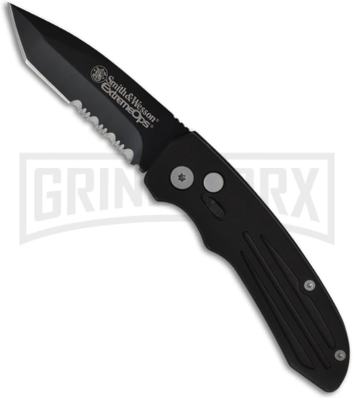 Smith & Wesson Extreme Ops SW50BTS Black Automatic Knife – Tanto Black Serr