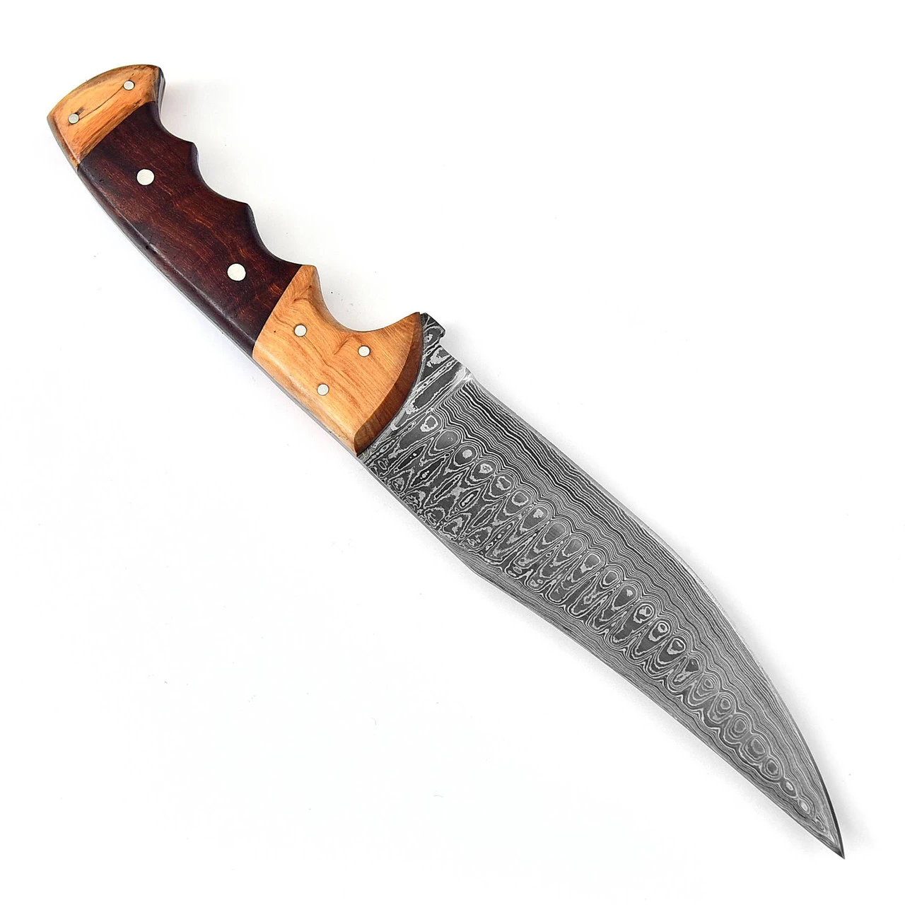 - QUALITY: This blade has real forged Damascus steel and polished wood to ensure you have no problems carrying, cutting, splitting, carving, and creating.